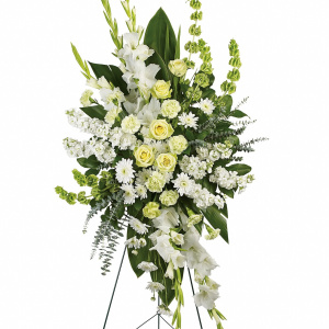 An elegant expression of sympathy, this wondrous white and green spray conveys purity and peace. A glorious choice for a magnificent memorial.