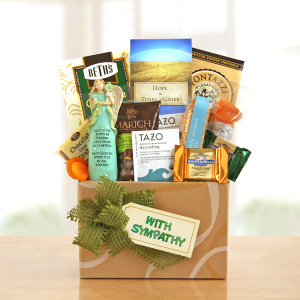 A natural kraft box holds a beautiful angel figurine inscribed with a lovely sentiment, as well as a comforting book of hope in times of grief.