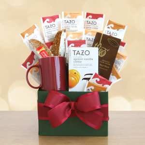 Stocked with an assortment of the finest Tazo teas from Zen and Passion to Organic Chai and Earl Grey, they are ready to be enjoyed in an earthenware ceramic mug.